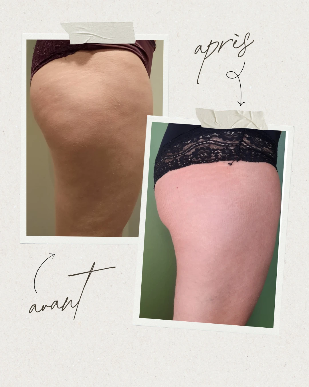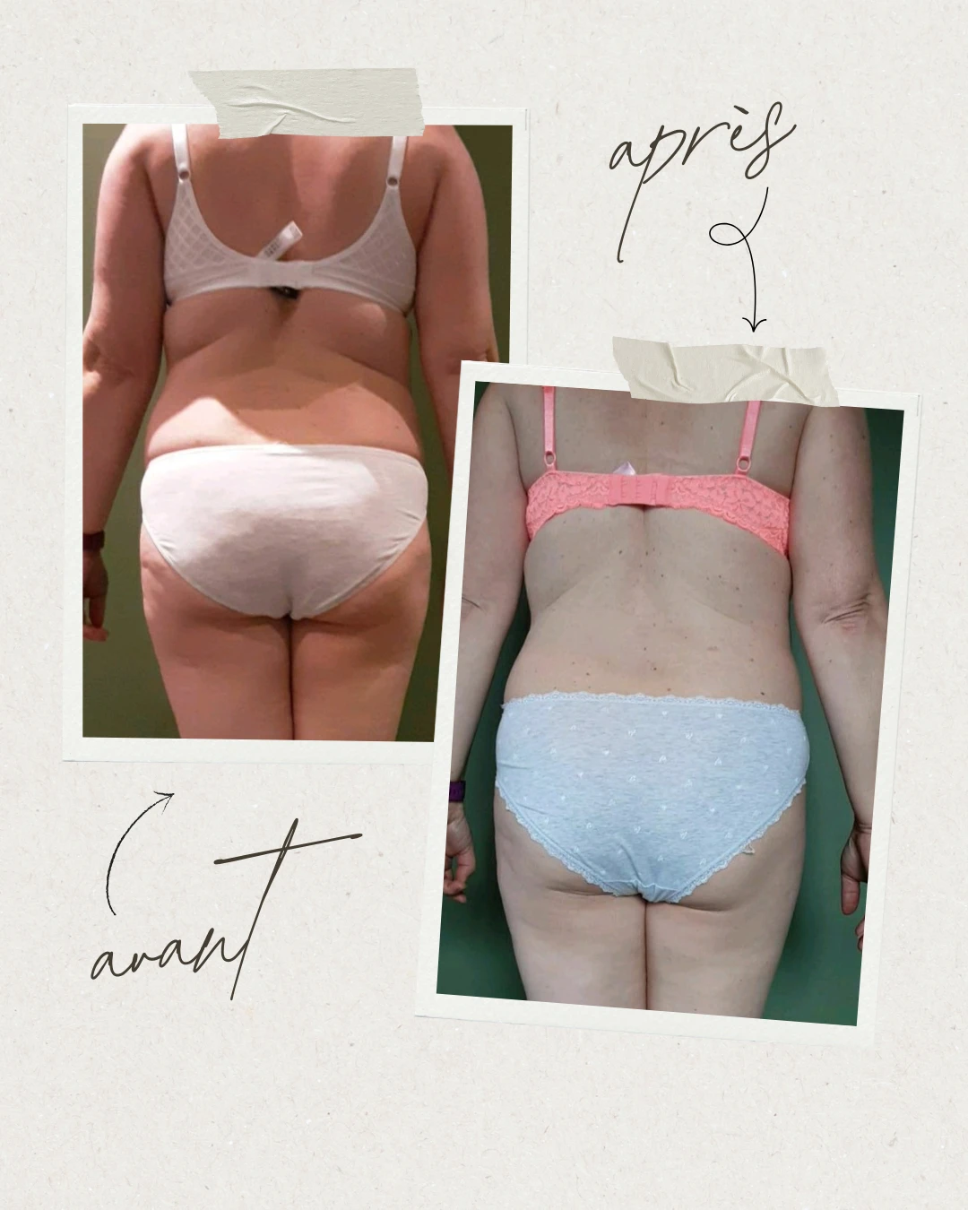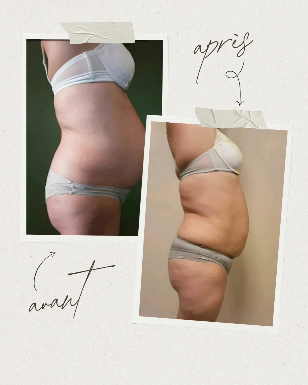 Selon les personnes, une diminution plus ou moins importante des centimètres sur les zones traitées peut être observée.