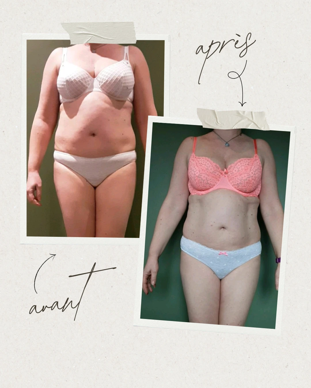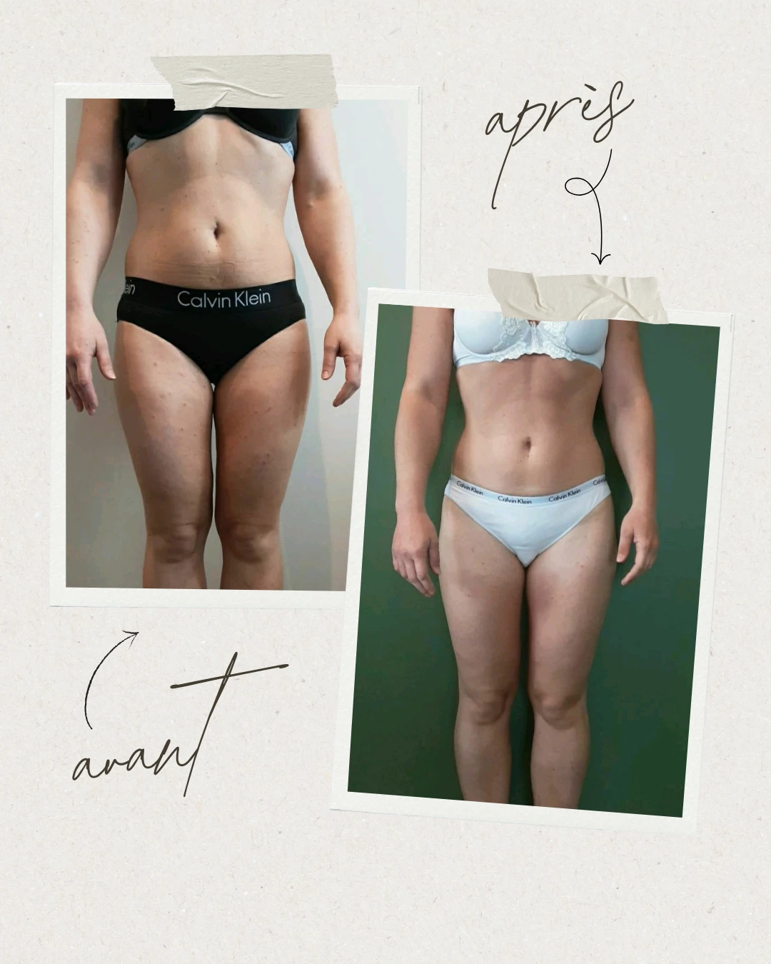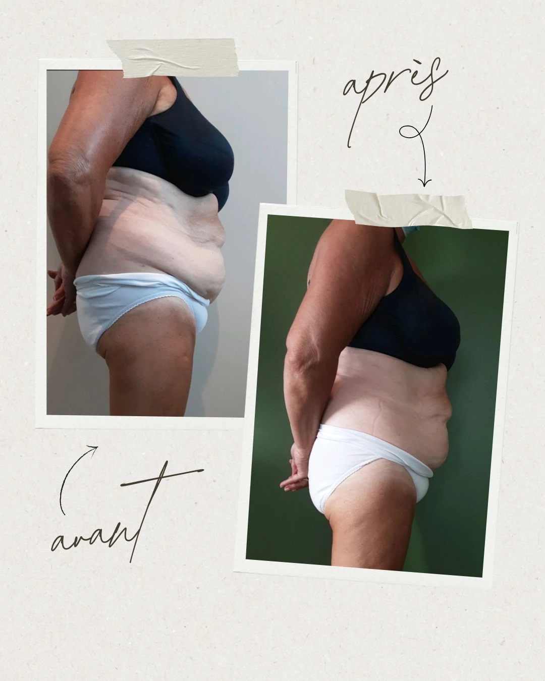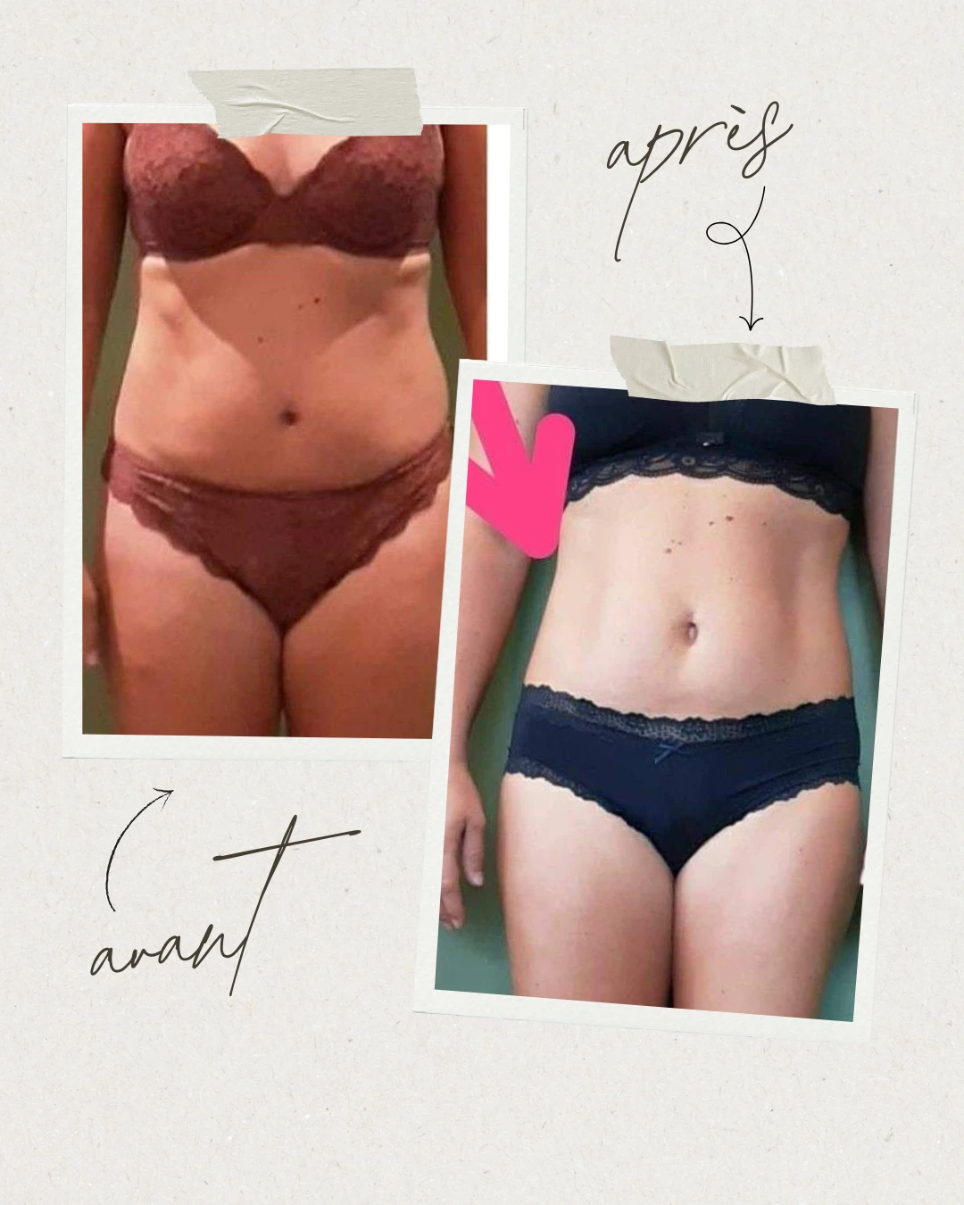 Selon les personnes, une diminution plus ou moins importante des centimètres sur les zones traitées peut être observée.